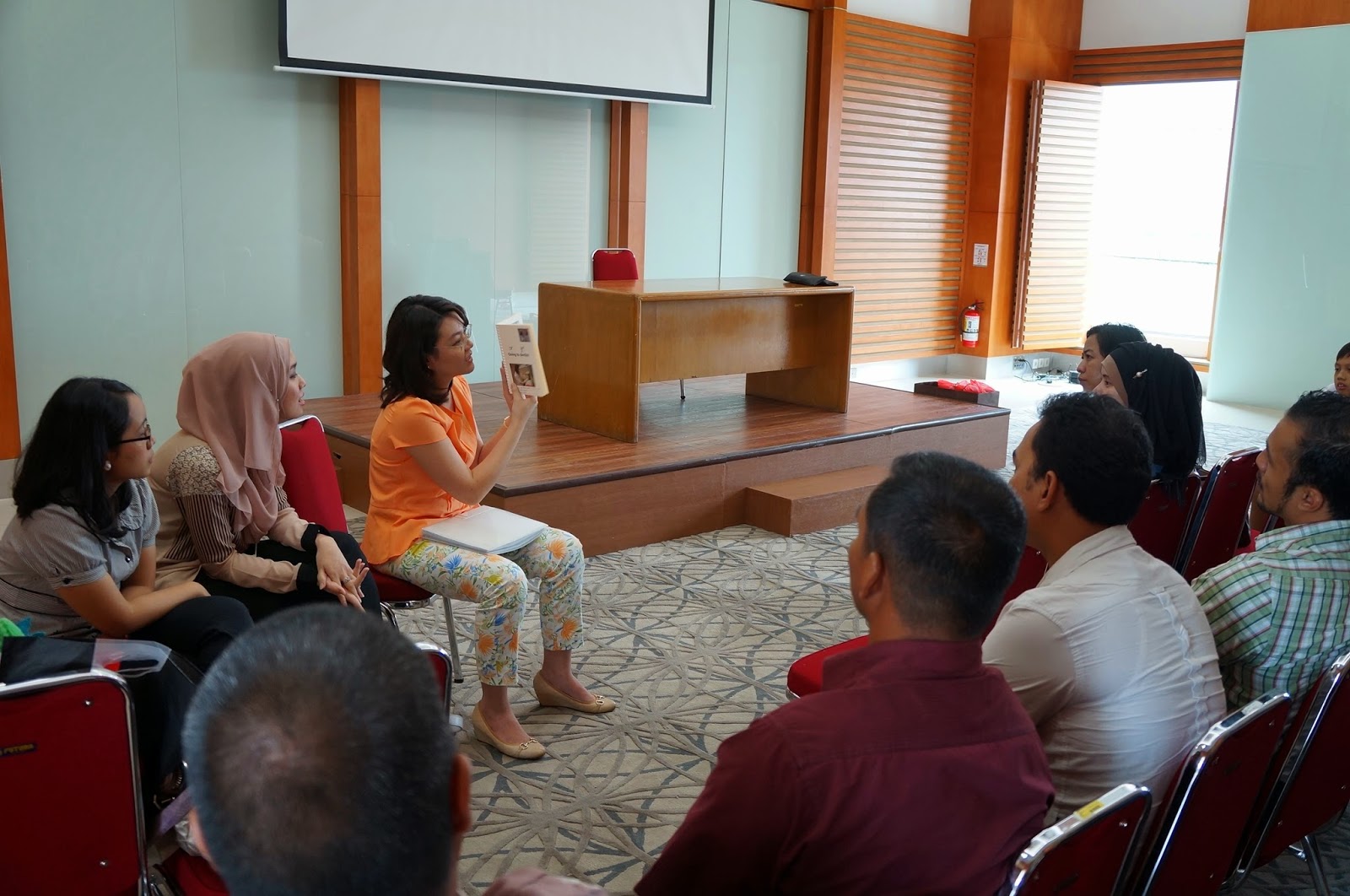 drg. Olivia, SpKGA menerangkan kegunaan buku Social Story kepada orang tua dan guru SLB Sarana Terpadu |