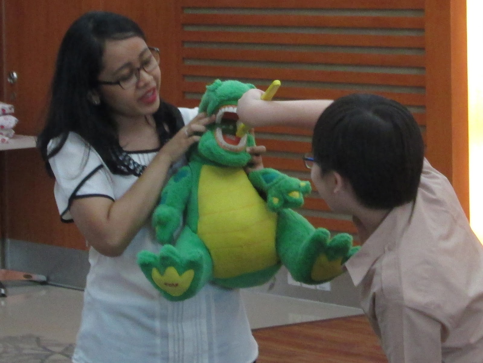 sedang menerangkan cara menyikat gigi yg baik dan