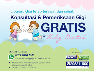 Siapa bilang cek up ke dokter gigi mahal? Dalam rangka menyambut liburan sekolah Kidz Dental Siloam Simatupang, Jakarta Selatan mengadakan :