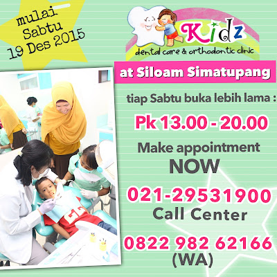 Buat para orangtua yg tinggal di Jakarta Selatan dan kesulitan mencari dokter gigi anak, mulai 19 Desember 2015 karena antusiasme pasien Kidz Dental at Siloam Simatupang tiap Sabtu buka lebih pagi lho…