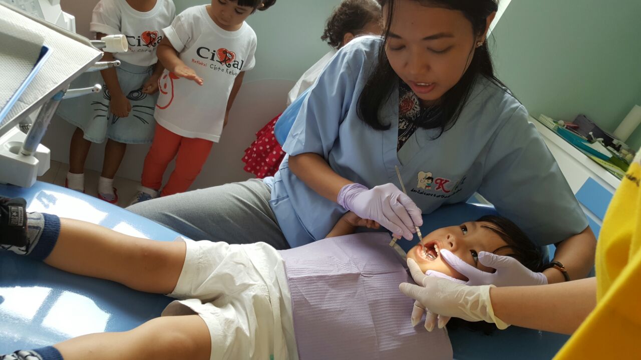 | drg. Harumi, SpKGA melakukan pemeriksaan gigi pada anak- anak Cikal |